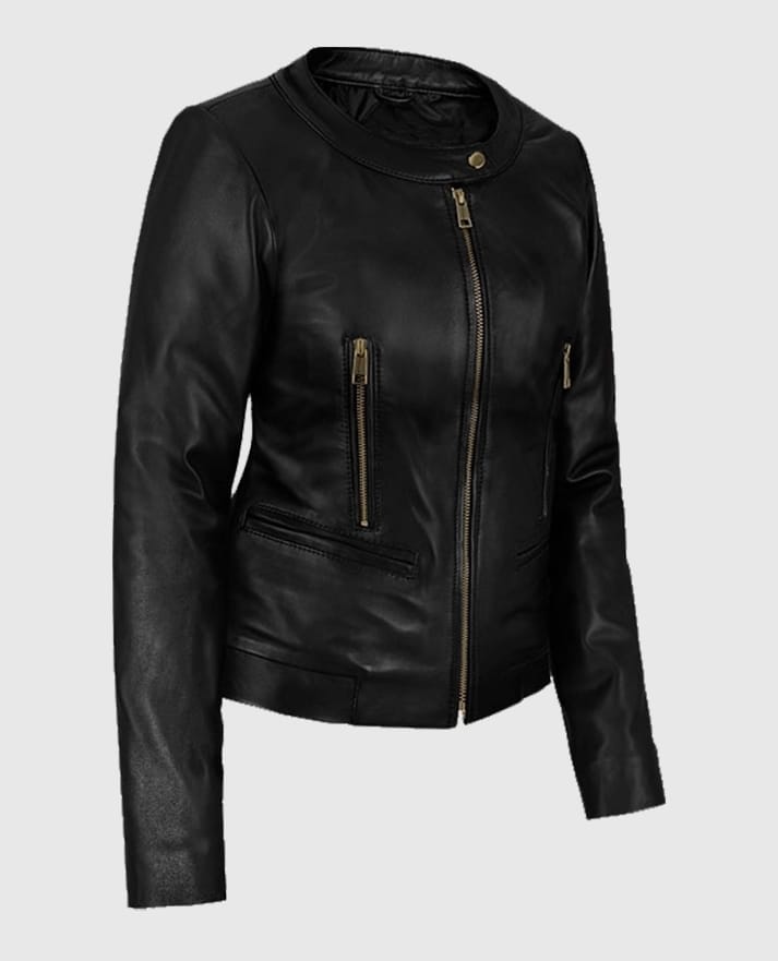 Women's Black Cafe Racer Leather Jacket